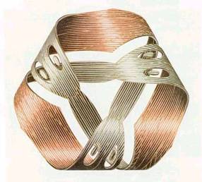 Morfologicamente simile, ma più complesso è il nastro di Mobius: si tratta di una striscia a cui, prima di congiungere gli estremi, viene impartita una rotazione di mezzo angolo ad un'estremità. Un oggetto molto semplice ma inquietante allo stesso tempo, che ha attirato l'attenzione di matematici ed artisti tra cui M.C.Escher, che ebbe modo di interpretarlo in una sua splendida raffigurazione.
