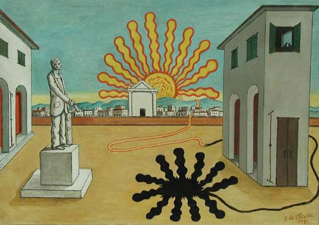 Come nasce un quadro metafisico? Come si può modificare la realtà eppur rappresentarla? L'artista stesso ce lo suggerisce in un commento al suo primo quadro metafisico, (Enigma di un pomeriggio d'autunno del 1910)