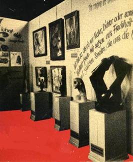 Così parlò Adolf Ziegler, presidente della Corte Imperiale della Cultura, riferendosi ad un progetto che avrebbe avuto luogo di lì a pochi mesi. Contemporaneamente alla Grande Esibizione di Arte Tedesca, fu inaugurata infatti un'altra mostra, che comprendeva però opere delle avanguardie moderne, chiamata in modo dispregiativo "Entartete Kunst", ovvero "arte degenerata". Questa, per effetto indesiderato, ebbe un successo di gran lunga maggiore di quella "ufficiale", e la sua apertura dovette essere prolungata. In realtà i nazisti avevano progettato l'"Entartete Kunst" con lo scopo di mostrare ai cittadini quale tipo di arte non era accettato dal Reich, e come quest'arte fosse dunque degenerata e da disprezzare.