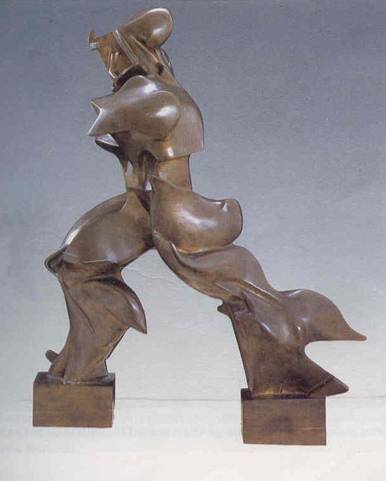 In scultura l'opera più compiuta è Forme uniche della continuità nello spazio (fig. 6). Con la chiarezza critica che contraddistingue Boccioni, il significato dell'opera è espresso nel titolo: la forma umana, in movimento veloce, mentre già ha raggiunto una posizione e si accinge a procedere oltre, è in qualche modo ancora presente nello spazio precedente, perché nella nostra rètina restano le immagini e soprattutto perché il moto è continuo e noi lo percepiamo in sintesi.