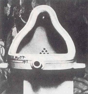 Ancora più dirompente fu poi l'invio, da parte di Duchamp, sotto lo pseudonimo di Richard Mutt, di una scultura, intitolata Fontana (fig. 4), ad una mostra organizzata nel 1917. Era un orinatoio maschile in maiolica bianca capovolto e collocato su un piedistallo di legno. Lo scandalo fu immenso. Pensando allo pseudonimo Mutt, si può pensare ad una relazione non solo con la parola "Mutter" ("madre" in tedesco), ma anche con Mut, la dea-madre egizia, dotata contemporaneamente degli attributi maschili e femminili in quanto generatrice di tutti gli uomini. In tal caso la scultura potrebbe rappresentare anche il ventre materno: il titolo stesso, Fontana, indicherebbe la fonte della vita.