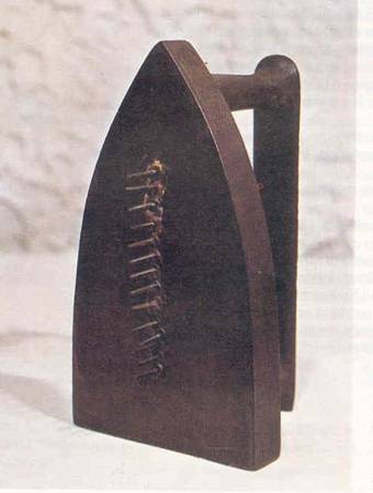 Quest' oggetto e' carico di ironia: un ferro da stiro con la piastra irta di spunzoni pronti a strappare la fresca biancheria lavata.