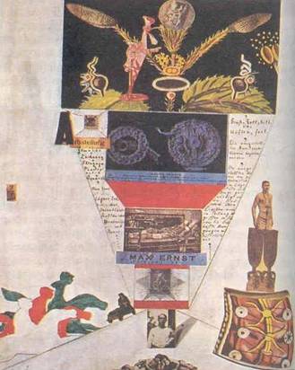 In Germania il dadaismo si sviluppa principalmente in tre città: Berlino, Colonia, Hannover. I maggiori artisti tedeschi sono Hans Arp (Strasburgo 1887- Basilea 1966) e Max Ernst (Bruhl 1891-Parigi 1976). Il loro dadaismo, pur sempre innovatore ed antiborghese, è contraddistinto dalla ricerca di un linguaggio espressivo nuovo. Con questo scopo Ernst elaborò alcune tecniche, fra cui, importantissimo per gli sviluppi futuri nell'arte del novecento, il montaggio di vignette, collage o di fotografie preesistenti ritagliate da giornali e combinate reciprocamente in rapporti nuovi, in modo da generare una reazione psicologica inconsueta nello spettatore, agendo sul suo inconscio ed esprimendo il mondo interiore dell'artista. Tale tecnica del montaggio e' presente in particolar modo nel suo capolavoro: Progetto di manifesto (fig. 7).