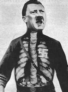 Usa la tecnica dadaista del fotomontaggio per condurre la propria lotta politica , raggiungendo risultati di straordinaria efficacia , come nelle immagini in cui alla figura di Hitler ne sovrappone altre , per mostrare qual è la realtà che si cela dietro le parole del dittatore nazista . Così in "Adolfo il superuomo ingoia oro e suona falso '', Hitler è rappresentato come in una radiografia , nella quale si identifica una pila di monete che parte dallo stomaco già pieno : per indicare che la colonna portante del nazismo è , ancora una volta , il capitalismo .