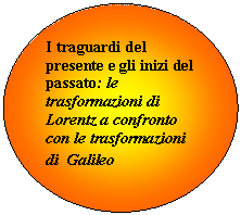 Non sempre è così facile accettare che tutto debba ritornare, alle volte è molto più semplice la linearità dove niente ha un inizio e niente ha una fine. Ma un inizio serviva a Lorentz per elaborare le sue trasformazioni. Al fisico Olandese spettò l'arduo compito di individuare delle leggi matematiche che fossero adeguate a porre in relazione tra loro, sistemi di riferimento inerziali in moto relativo con velocità adeguate. Quando infatti Maxwell, grazie alle sue equazioni, dimostrò l'esistenza di onde elettromagnetiche, i fisici furono costretti ad analizzare il moto di particelle che si muovevano alla velocità della luce (c). Le trasformazioni di Lorentz, indispensabile supporto per la teoria della relatività di Einstain, riuscirono in questa impresa. Iniziava la fisica moderna, analizzandole però ci si accorse immediatamente che esse potevano essere ricondotte alle trasformazioni di Galileo(baluardo della fisica classica), considerando valori di v nettamente inferiori alla velocità della luce (c).