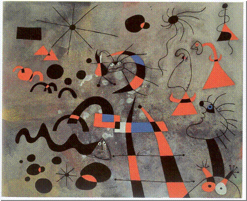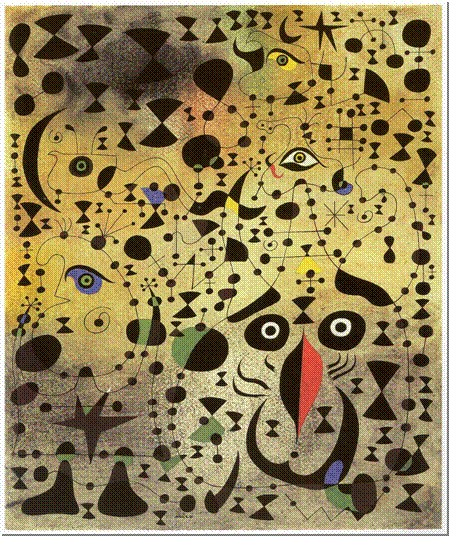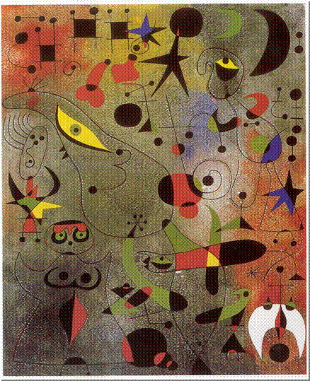 Mirò utilizza ancora una volta la tecnica surrealista che prevede il libero fluire delle immagini che si richiamano vicendevolmente. Nonostante il numero impressionante di segni ogni componente non è solo necessario ma indispensabile alla struttura del dipinto.
