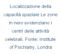I maschi possiedono infatti una funzione celebrale specifica, localizzata in almeno quattro punti della parte anteriore dell'emisfero destro e in zone più limitate del sinistro. Ecco perchè gli uomini prediligono attività come la matematica, in cui è sufficiente che funzioni bene un singolo centro situato nella massa grigia.