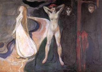 Munch: la ragazza vergine e pura, la donna meretrice, la vecchia come simbolo dell'angoscia (p.16)