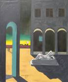 C'è un messaggio che bisogna capire scorgendo nei colori caldi e fermi, privi di vibrazioni atmosferiche, in quella luce bassa opposta alle lunghe e definite ombre. Lo spazio, il nostro spazio, si è fatto allucinante. E' un luogo sognato? Esiste ancora la vita? Il filtro della mente e l'intuizione del genio.