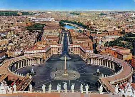 Nel '600 il Bernini intervenne in piazza s. Pietro creando due cerchi accostati o intersecati che formano una particolare ellisse, rivela come egli tendesse alla dilatazione dinamica e progressiva dello spazio, come un'onda che si accavalla all'altra e viene rimandata ai bordi, esprime al massimo l'idea di piazza come luogo circolare e circondato da porticati, l'idea del Bernini ebbe molto successo in tutta l'architettura delle piazze occidentali.