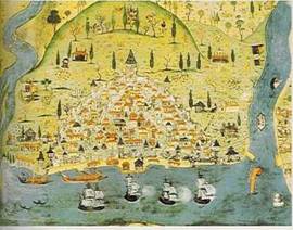Ma fu solo in epoca Giustinianea (VI secolo) che Costantinopoli acquisì quelle caratteristiche monumentali che ne fecero la più splendida città allora conosciuta, soppiantando definitivamente in ricchezza e popolazione i più ricchi e antichi centri urbani del Mediterraneo orientale (Alessandria, Antiochia) e la stessa Roma, la cui popolazione si era ridotta, a seguito delle invasioni barbariche e delle guerre gotiche a poche decine di migliaia di anime.