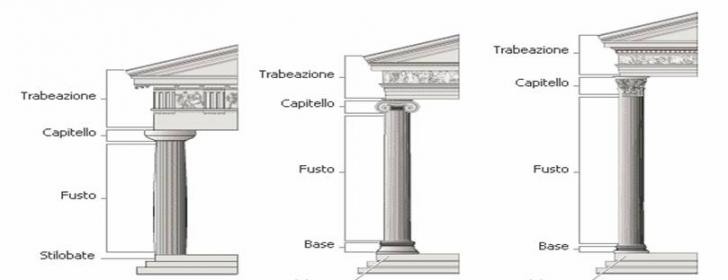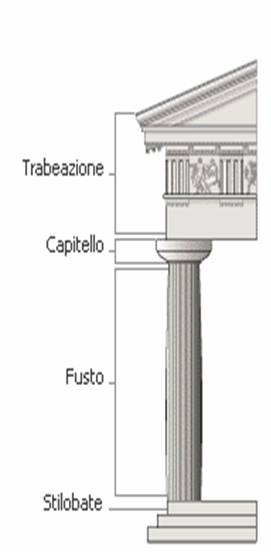 Il più antico ordine è l'ordine dorico, il quale risale all'inizio del VII secolo a.C. In esso la colonna, priva di una propria base, si appoggia direttamente sullo stilobate, è rasteremata verso l'alto e percorsa verticalmente da scanalature, il cui crinale divisorio è tagliato ad angolo vivo; ornata in alto dal collarino, è coronata dal capitello, formato da due elementi: una specie di cuscino a pianta circolare, detto echino, e una lastra quadrangolare, detta abaco.