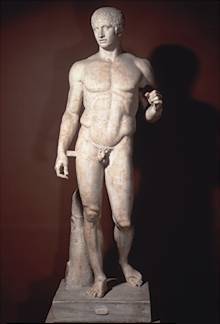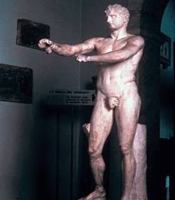 Questa statua è una copia romana di origine bronzea, rappresenta un atleta