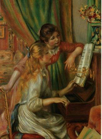 Questo notevole ritratto fa parte di una serie di dipinti dedicati ai divertimenti spensierati delle giovani figlie della borghesia. Il pittore ha colto in pieno la grazia delle giovani fanciulle in una sala di musica, tema già caro agli artisti olandesi del XVII secolo e ai pittori francesi del secolo successivo. Renoir, a differenza degli altri impressionisti, dava molta importanza al ritratto. La lezione di piano era uno dei suoi temi preferiti. In questa versione la fluidità delle forme e la delicata armonia dei colori chiari e lucenti prevalgono ancora sulle figure, che restano anonime.