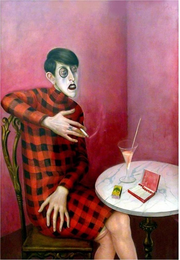 Ben visibile è la sisigaretta, che forse è l'elemento di spicco dell'emancipazione femminile.Altri tratti esplicitamente maschili sono il taglio di capelli, il volto spigoloso e pallido.