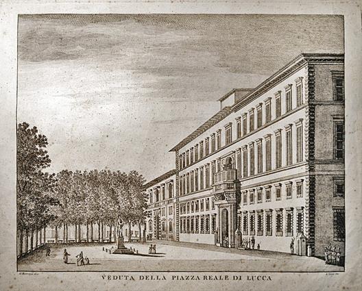 Fig.10 Giuseppe Matraia, Veduta della Piazza Reale di Lucca, incisione,1860 ca.