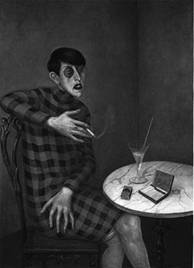 Dix la raffigura intenta ad ascoltare un interlocutore e pronta a rispondergli, seduta in maniera spigliata presso l'angolo di un caffè, davanti a un tavolino rotondo sul cui piano di marmo sono posati, accanto alla bibita, una scatola aperta di sigarette e un pacchetto di fiammiferi ( fumare è tuttora presunto simbolo di emancipazione), la sigaretta tenuta accesa fra l'indice e il medio della destra, il vestito a scacchi neri e arancioni, corto, secondo l'ultima moda, così da lasciare scoperte le ginocchia e da mostrare le calze malamente tirate, la mano sinistra in riposo ma in forma di artiglio, viso e naso adunchi, pallida, con le labbra tinte e gli occhi cerchiati di chi ha intensamente vissuto, il monòcolo, i capelli tagliati alla mascolina.