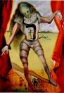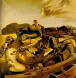 Dalì allucinogeno:Il profeta dell'LSD senza LSD, ecco chi è Dalì. E in questa fase aumenta il suo interesse per i sogni e le allucinazioni. I suoi quadri si riempono di personaggi fantastici, volti terrorizzanti e fluorescenti che sembrano usciti dai quadri di Bosch (pittore a cui Dalì deve molto). Dalì unisce elementi dissonanti, figure oniriche, crea animali che sembrano degli errori della genetica e figure umane che si sciolgono, prive di una solidità innanzitutto interiore, retti soltanto dalle stampelle che sono un motivo ricorrente della sua arte.
