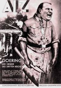 In Göring il boia del Terzo Reich (14 settembre 1933) Heartfield sottolinea il fatto che il vero colpevole dell'incendio del Reichstag, Hermann Göring, esponente di spicco del nazismo e ministro del Reich, non apparirà davanti al tribunale, mentre ci saranno quattro uomini innocenti. Quest'opera condivide il sospetto, sorto fin dal primo momento, che gli stessi nazisti avessero organizzato l'incendio, in quanto ad essi solo poteva portare vantaggio. |