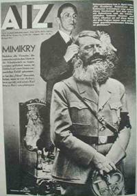 L'ironico Mimica (8 aprile 1934) pone l'accento sulla ricerca del consenso delle masse, nonostante la loro totale esclusione dalla vita politica. Nell'interpretazione di Heartfield, la propaganda di Josef Göbbels cerca di mascherare il Führer con la barba di Marx per attrarre i lavoratori contrari alle idee nazionalsocialiste. Questi dovrebbero essere convinti mescolando la svastica ai simboli bolscevichi di falce e martello. |