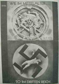 Come nel Medioevo, così nel Terzo Reich (31 maggio 1934). Quest'opera dall'evidente significato evidenzia un ritorno al Medioevo, con un parallelismo tra un basso rilievo di una vecchia chiesa tedesca raffigurante una scena di supplizio e l'immagine di un uomo torturato dalla svastica. |