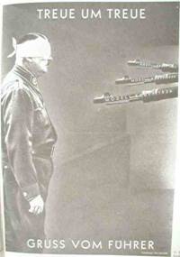 Lealtà in risposta alla lealtà. Saluti dal Führer (12 luglio 1934) immortala questo evento. La mattina del 30 giugno Hitler arrivò inaspettatamente a Monaco, dove arrestò personalmente Röhm e i capi delle SA che lo circondavano; tutti a distanza di poche ore vennero fucilati senza processo. In questo fotomontaggio Heartfield rappresenta Röhm assassinato -significativamente- usando mitragliatrici della fabbrica Krupp. |