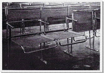 Un telaio costruito in tubolare d'acciaio di altissima qualità, provvisto là dove è necessario di una stoffa tesa, fornisce dunque una possibilità di seduta completamente elastica, che ha la stessa comodità dei mobili imbottiti con la differenza che è molto più leggera, maneggevole, igienica, dunque molto più pratica da usare.