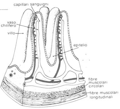 In ogni villo intestinale si trova un vaso linfatico, detto chilifero; nel quale entrano le sostanze grasse, mentre nei capillari sanguigni che circondano questo vaso entrano tutte le altre sostanze (aminoacidi, zuccheri ecc..).