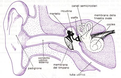 Le vibrazioni colpiscono il timpano, membrana che separa l'orecchio esterno dall'interno, passando per l'orecchio medio e giungono alla finestra ovale situata all'inizio dell'orecchio interno. Dall'organo del Corti attraverso il nervo uditivo le vibrazioni vengono recepite a livello nervoso.