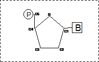 Uno zucchero pentoso è uno zucchero la cui molecola è costituita da 5 atomi di carbonio. La base azotata è legata al carbonio 1 dello zucchero pentoso, mentre l'acido fosforico (H3PO4) è legato al carbonio 5 che è esterno all'anello dello zucchero.