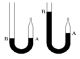 Consideriamo il seguente esperimento. Prendiamo un lungo tubo di vetro ad U munito di rubinetto in uno dei due rami. Versiamo del mercurio da una estremità e, quando il livello del mercurio nei due rami del tubo è lo stesso, chiudiamo la chiavetta. In tal modo l'aria, che rimane nella parte chiusa del tubo esercita sulla superficie del mercurio in A la stessa pressione che viene esercitata dall'atmosfera in B. Il campione di gas, raccolto in A, occupa ora un volume, sotto la pressione atmosferica, che supponiamo uguale a 760 mmHg = 1 atm. Se ora si seguita a versare del mercurio, in modo che il dislivello tra A e B sia di 760 mm, la pressione cui è soggetto il gas nel ramo chiuso del tubo deve risultare uguale alla pressione atmosferica più la pressione esercitata da una colonna di mercurio di altezza uguale al dislivello AB. Si può osservare che avendo raddoppiato la pressione, il volume si è ridotto alla metà. Se il gas contenuto nel ramo chiuso del tubo, viene sottoposto ad una pressione tre volte maggiore di quella iniziale, il suo volume diventa pari ad un terzo di quello iniziale.