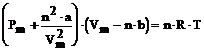 dove Vm è il volume molare alla pressione P ed alla temperatura T (ossia il volume del recipiente). Il volume b, escluso al moto delle molecole, è chiamato covolume.