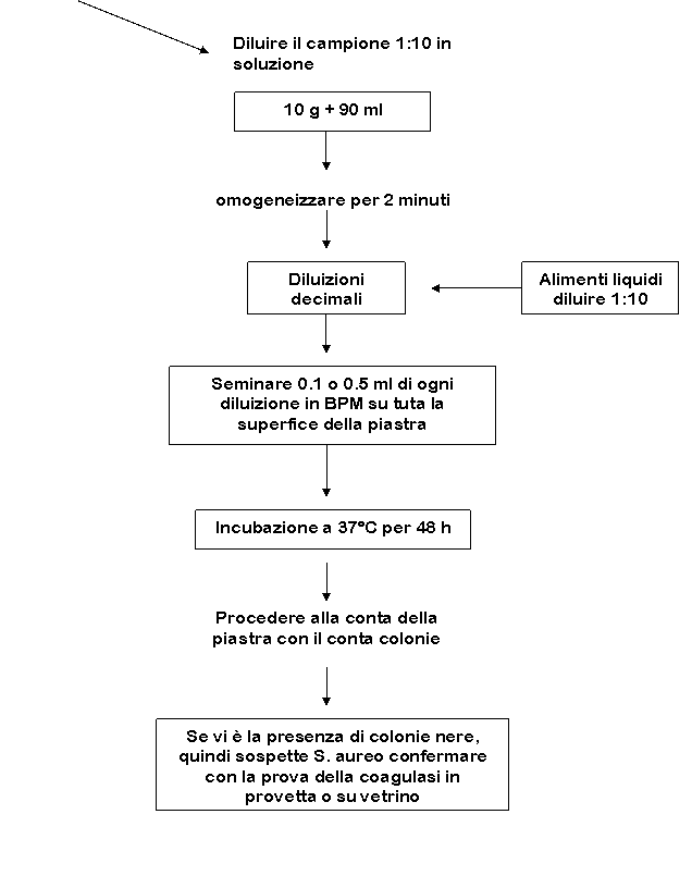 La ricerca dello S. aureus avviene con una specifica modalità che prevede inizialmente una diluizione del campione 1:10 in soluzione fisiologica, e sua successiva omogeneizzazione.