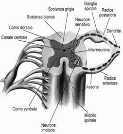 fibre nervose che corrono all'interno della colonna vertebrale. La sezione