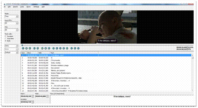 Sotto la finestra del video, a destra, è collocato il timecode, che riporta l'ora, i minuti, i secondi e i frame (fotogrammi al secondo). Questi ultimi sono essenziali per la sincronizzazione dei sottotitoli e la loro corretta successione sullo schermo (è infatti opportuno che tra un sottotitolo e l'altro ci siano almeno 200 frame).