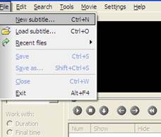 Prima di passare alla fase di sottotitolazione vera e propria, è necessario caricare il video da sottotitolare tramite il menù Movie > Open (Figura 5) e attivare la schermatadei sottotitoli tramite File > New Subtitle (Figura 6).