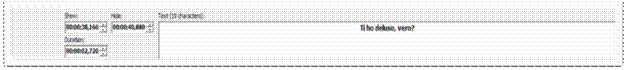 Dopo aver effettuato lo spotting, si può passare alla scrittura dei sottotitoli in traduzione nella finestra di inserimento collocata in fondo a destra (Figura ).