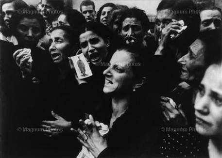Le tre fotografie che ho selezionato sono testimonianze di altrettanti drammatici eventi: la prima è stata scattata durante le cerimonie per la liberazione della città di Parigi, il 26 Agosto del 1944. Essa ritrae la folla che si getta al suolo e si contorce in un disperato tentativo di salvezza nei confonti della reazione dei tedeschi, che hanno cominciato a sparare sulla folla;