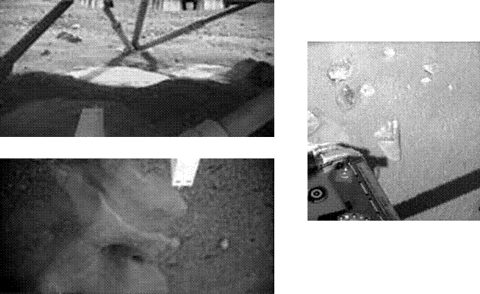 Le immagini che vediamo sopra risalgono a pochissimi giorni fa (2 giugno 2008), sono piccole e non molto definite, ma se le prime ipotesi degli scienziati fossero confermate si tratterebbe di qualcosa di eccezionale: sarebbero la testimonianza che su Marte è finalmente stato rinvenuto del ghiaccio.
