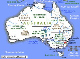 Il Commonwealth australiano comprende sei stati e due territori. Gli stati e le loro capitali sono: Nuovo Galles del Sud (Sydney), Vittoria (Melbourne), Queensland (Brisbane), Australia Meridionale (Adelaide), Australia Occidentale (Perth) e Tasmania (Hobart). I territori e le loro città principali sono l'Australian Capital Territory (Canberra) e il Territorio del Nord (Darwin).
