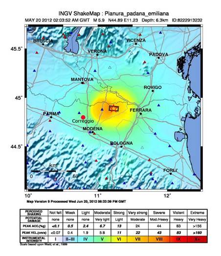 Figura 1.3: Mappa di scuotimento relativa la sisma del 20 maggio 20 2