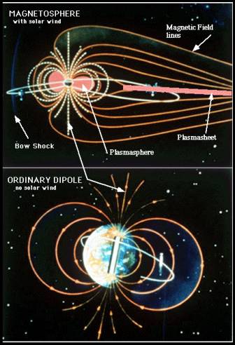 v i raggi cosmici, e soprattutto il vento solare, sarebbero meno schermati: il vento solare disturberebbe i segnali radio FM e danneggerebbe la memoria dei computer, trasformando lo zero del sistema binario in 1