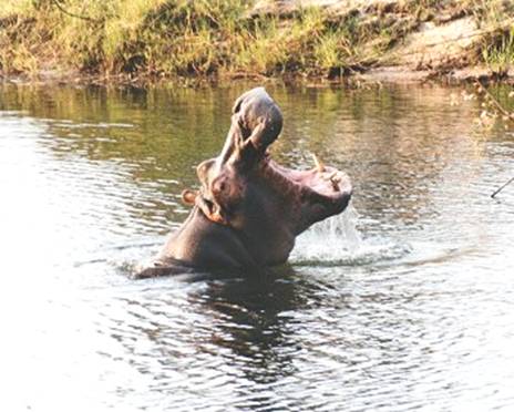 Si fa riferimento agli animali all'inizio della descrizione dell'ambiente. Essi sono gli ippopotami e gli alligatori ma non sembrano aggressivi in quanto stavano stesi al sole.