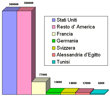 6.000; Stati Uniti, 500.000; Resto delle Americhe, 500.000.