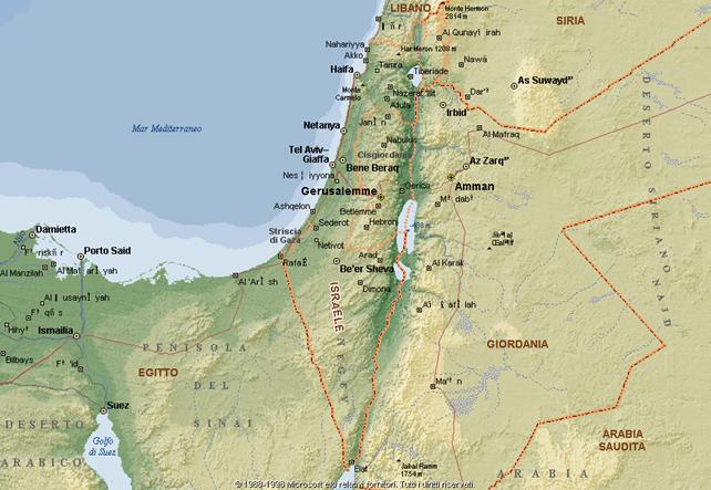 l'Egitto e ad ovest con il Mar Mediterraneo. La punta più meridionale d'Israele