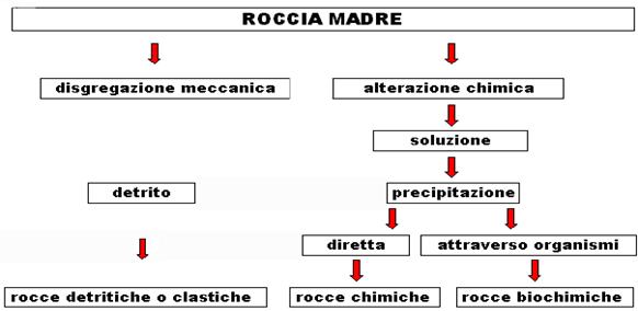 l'alterazione e la disgregazione di rocce preesistenti (sia magmatiche, sia