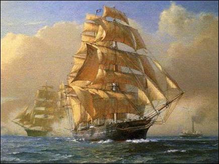 Clipper da tè americani: dal 1846 al 1860, navi a tre alberi di stazza tra 750 e 1800 tonnellate con lunghezze attorno ai 70 metri (90 fuori tutto).