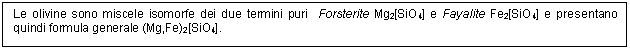 positivi che si alternano ai tetraedri. Ricordiamo le olivine (o perìdoto), silicati di Fe e Mg, ad alto peso