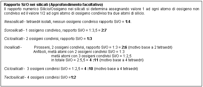 rapporto tra atomi di ossigeno e di silicio è di 2:1 e la carica residua è