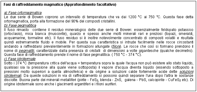 I magmi possono presentare caratteristiche diverse e quindi, durante il processo di solidificazione, possono dare origine a rocce con diversa composizione mineralogica.